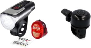 - StVZO-Licht (z.B. Sigma Aura): Erforderlich für die Straße. Blendfrei, Leuchtstärke wird oft in Lux angegeben.